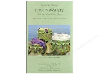Aunties Two Knotty Basket Pattern- Made with Woven Fabric Strips. Need a large basket for your yarn? Your Towels? Your socks and scarves? How about your plants or even your cat? Start with 2 1/2" fabric strips filled with batting and Craf-tex (or another heavy interfacing like Timtex) and weave them to create big beautiful baskets. Add a row of knots, from covered 1/2" upholstery piping, for an unusual and unique embellishment. Finished sizes; 12"x 8", 14"x 10", and 16"x 12". Includes instructions and step-by-step photos.