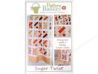 The Pattern Basket Sugar Twist Pattern- Sometimes everyone needs to get a little "twisted". Interlocking "V" shapes, that end up looking like a delicious piece of pastry, provide the twist to this quilt. Create it from a Layer Cake , as show, or use fabrics from your stash. Each rectangular block is surrounded by sashing. Finished size 59"x 77". Includes instructions and diagrams.