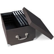 These stylish fabric-covered wood boxes are the perfect solution for organizing and safely storing your loose Sizzix dies. These handy boxes have a flowered nameplate on the front for easy labeling and are easily embellished for a truly customized look. Sizzix Extra Large Storage Boxes were specifically designed to keep 10 Bigz XL Dies, or 10 Movers & Shapers Dies protected. Inside each stackable box is a sturdy, built-in plastic divider to help keep dies neat and organized. These convenient boxes are designed for Sizzix storage, but they are so convenient you will want to store all your crafting accessories in them. This X-Large Storage Box is black and measures 6-1/2"x 15" x 9-5/8". Dies sold separately.