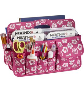 This rectangular carry-all made from durable 600 denier twill fabric has pockets for supplies of all sorts. Storage of phones, pens, scissors, and other small items is easy with a total of 15 pockets, three of which have flaps to keep items out of sight and secure. The interior is divided into two sections which will accommodate paper cutters, paper, and books. The Tool Box has been designed to carry the Neatnix Stuff Stax for portability around the house to friends' for group projects.